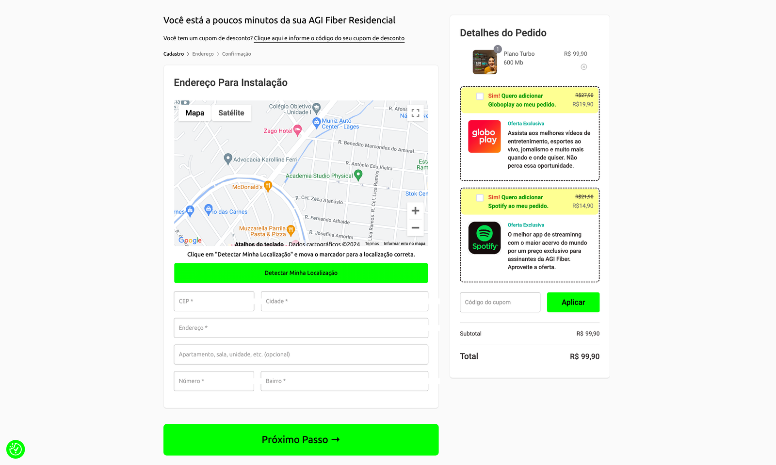 O Expnd CHK faz uma verificação de cobertura instantânea ao iniciar a assinatura. O cliente informa o endereço, e o sistema identifica se o local está na área de atendimento, permitindo que o processo siga de forma rápida.