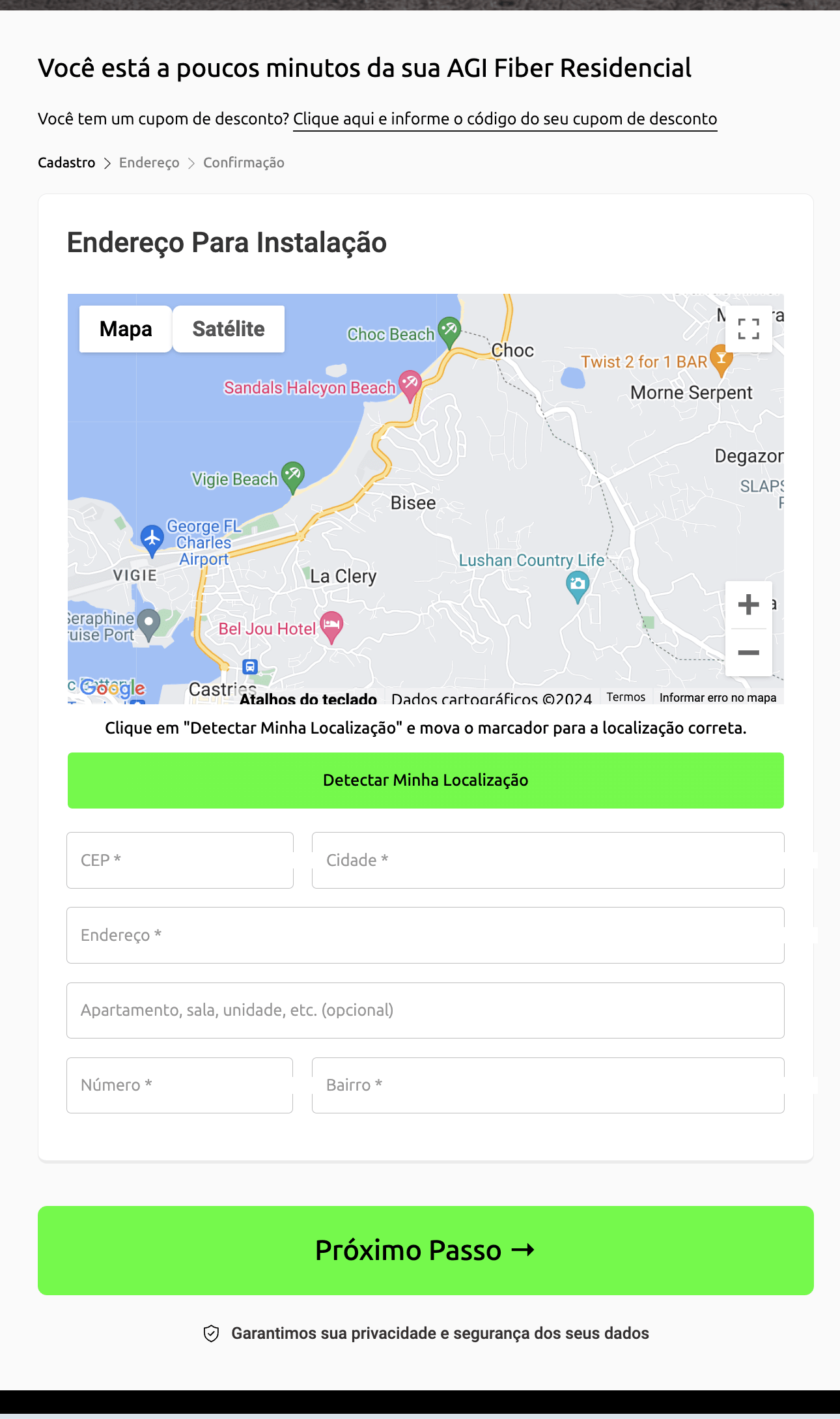 Seleção do Endereço e Confirmação de Viabilidade Durante o Cadastro