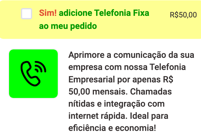 Para o provedor, essa funcionalidade de order bump aumenta o ticket médio, oferecendo um valor adicional sem complicar o fluxo de compra. Essa abordagem otimiza a receita ao permitir que os clientes adicionem serviços úteis já na etapa inicial do checkout.