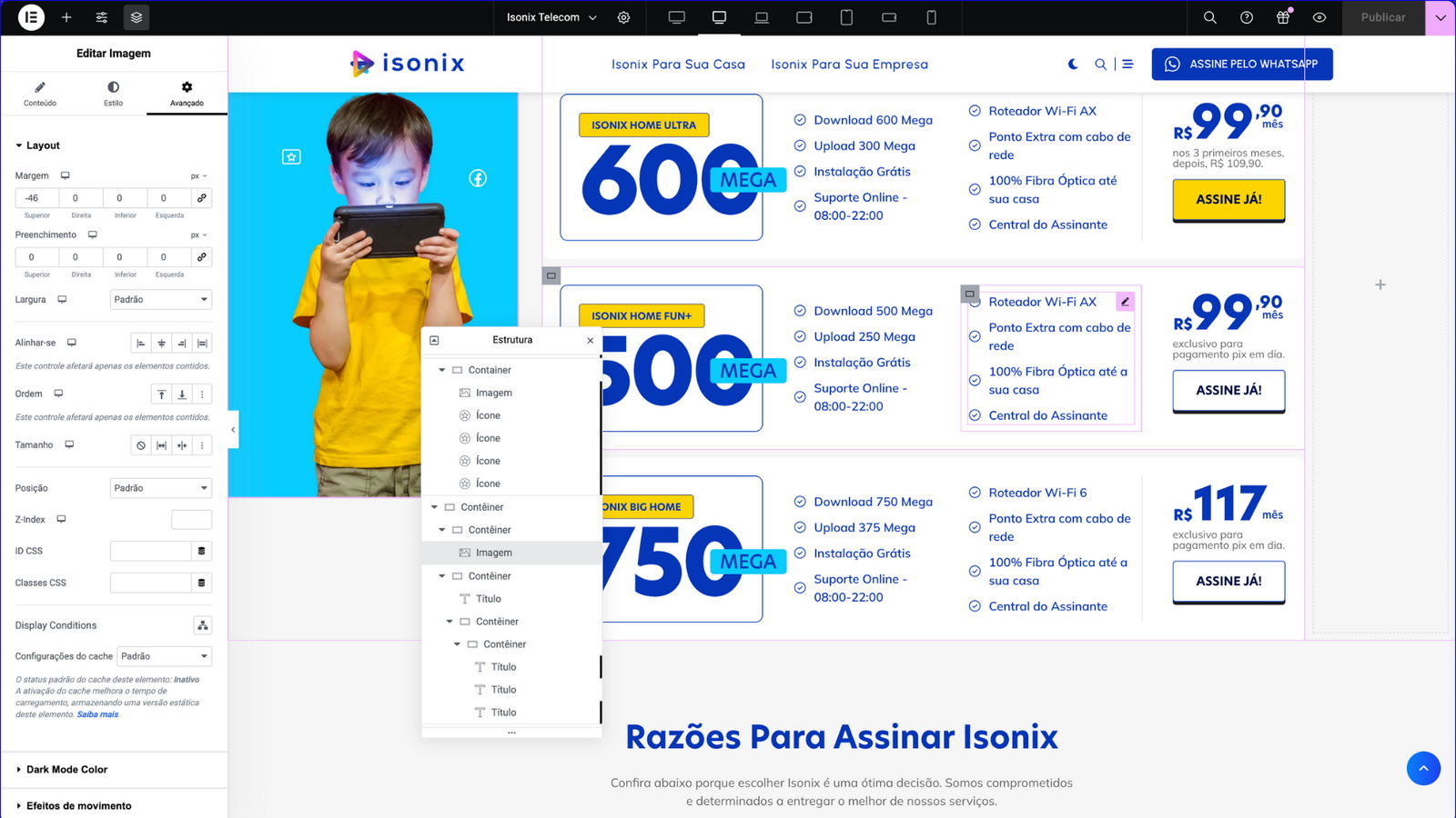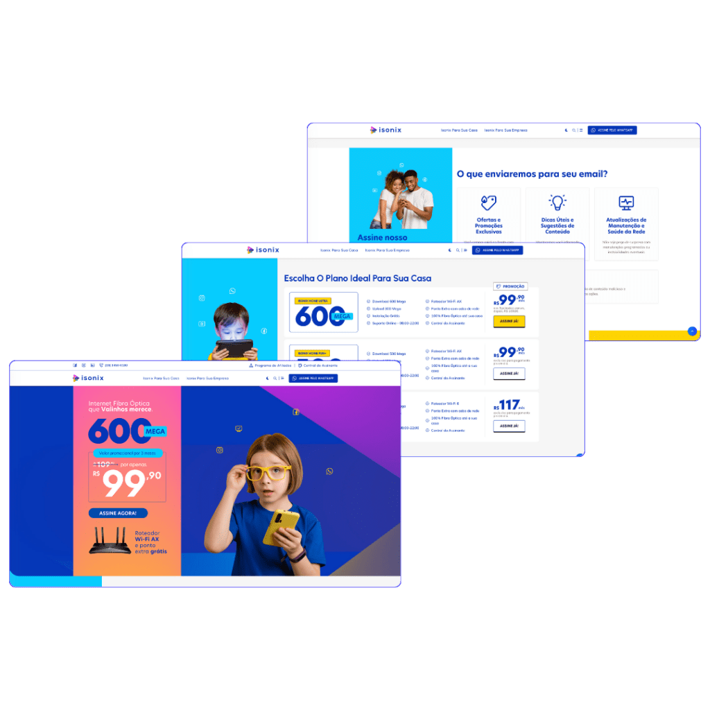 A ISONIX, provedor da cidade de Valinhos, São Paulo, nos procurou com desafios relacionados à conversão e à responsividade de seu site. Para resolver essas questões, desenvolvemos um novo website totalmente em WordPress, utilizando a ferramenta ELEMENTOR PRO.