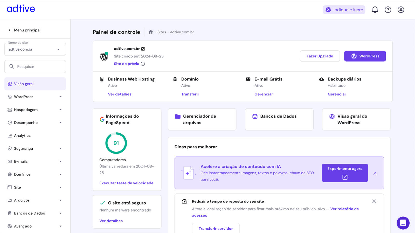 Providenciamos soluções de hospedagem confiáveis e de alta performance, garantindo que seu website esteja sempre acessível e com tempos de carregamento rápidos.